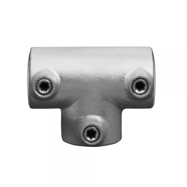 Dit lange T-stuk, wordt gebruikt wanneer er verbindingen nodig zijn in de horizontale buis. De buisklem zorgt voor een sterke en stabiele koppeling binnen uw frame- of constructiesysteem.
