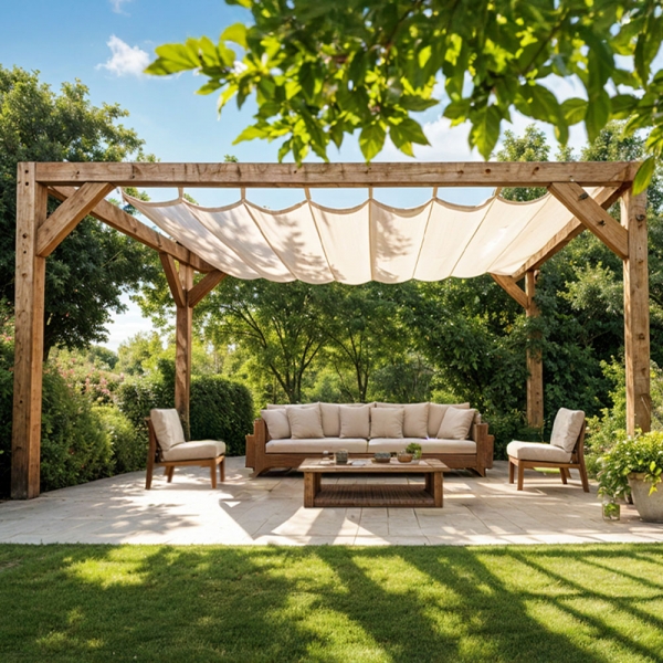 Maatadvies: Meet de binnenwerkse afmetingen van de pergola. Neem in de breedte ca. 5 cm minder voor voldoende speling; houd de lengte exact aan.