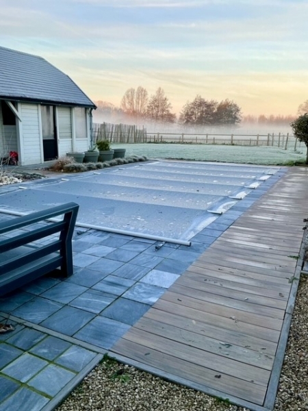 De beveiliging van het afdekzeil beschermt het zwembad ook in de winter. Een sneeuwlaag van meer dan 10 cm moet met een bezem of dweil van het oppervlak worden verwijderd. Let goed op dat het waterpeil in het zwembad niet stijgt! En zorg dat er geen waterplassen kunnen ontstaan. Zware vervuiling kan leiden tot verstopping van de waterafvoer.